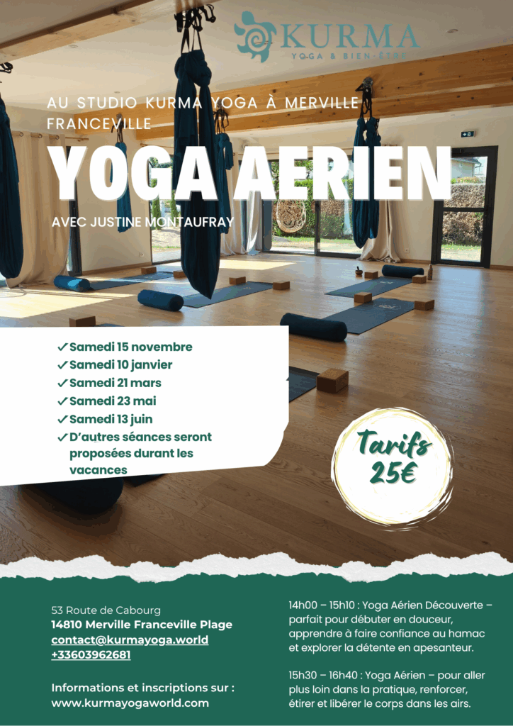 Stage A merville franceville, STUDIO KURMA YOGA WORLD Stages de Yoga vinyasa et yin yoga Projets similairesStages de Yoga vinyasa et…Stages de yoga aérien 2025/2026YOGA HOLIDAYSStages de Yoga Vinyasa et…Stage de Yoga en musiqueYOGA AERIEN en extérieur à…YOGA AERIEN en extérieur à…Stages de Yoga Aérien &Yin…YOGARDEN à CaenSOI SAUVAGE Yoga & Equicoatching